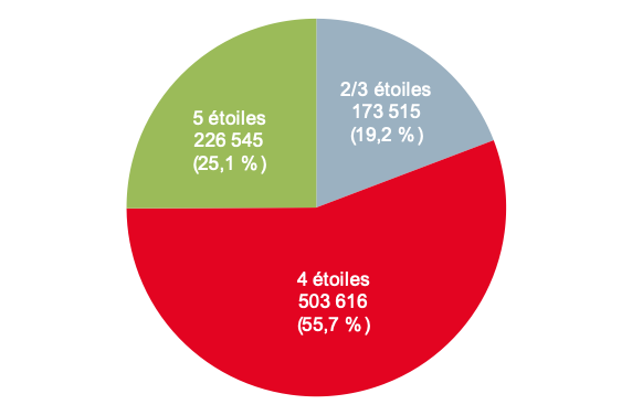 Répartition du nombre de chambre disponibles dans les hôtels selon la catégorie en 2024