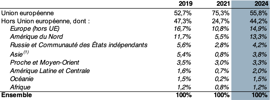 (1) Asie hors pays de la Communauté des Etats indépendants et du Proche et Moyen-Orient.