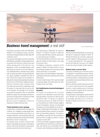 business travel and an end to restrictions. on board, while maintaining its attentive staff.