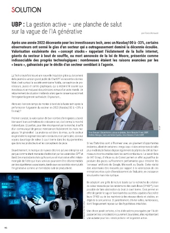 giques ‘IA générative’. La prudence est donc de mise, sur le secteur Fares Benouari, Gérant Actions suisses et globales, Union Bancaire Privée (UBP)