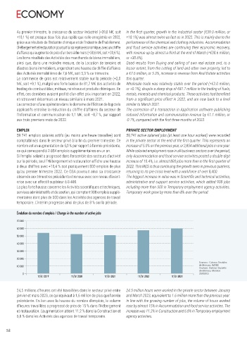 et restauration. L’augmentation atteint 11,2 % dans la Construction et increase was 11.2% in Construction and 6.8% in Temporary employment