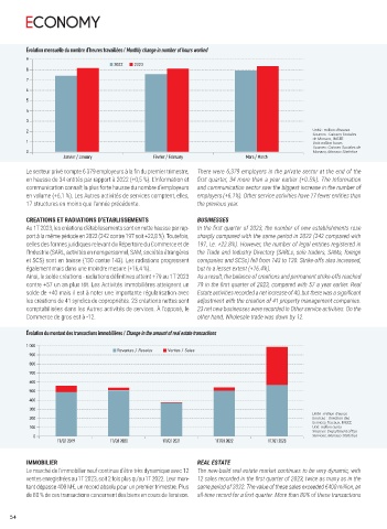 Au 1T 2023, les créations d’établissements sont en nette hausse par rap- In the first quarter of 2023, the number of new establishments rose
