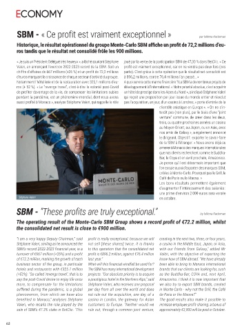 The operating result of the Monte-Carlo SBM Group shows a record profit of €72.2 million, whilst