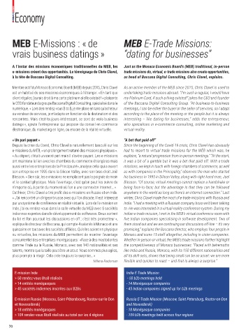 e-missions du MEB, « un prolongement naturel des missions physiques ». had to resort to virtual trade missions for the MEB which was, he