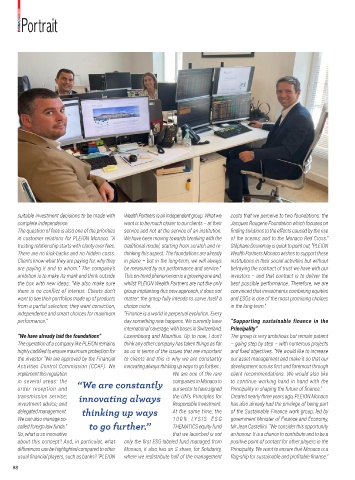 trusting relationship starts with clarity over fees. traditional model, starting from scratch and re- Stéphane Desvernay is quick to point out, “PLEION