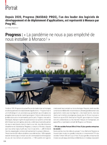 d’expérience et d’assistance, Progress y compris à Monaco, s’assure « 70% des sociétés Fortune 500 et 24 des 25 plus grandes entreprises